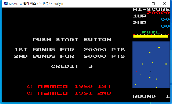 1980년 남코에서 발매한 자동차 레이싱게임입니다. 영문 이름으로 Rally-X로 발매되어 많은 사랑을 받았던 게임이죠. 경주용 자동차를 몰아서 도로에 흩어져있는 깃발 10개를 획득하면 스테이지를 클리어하는 규칙입니다. 깃발을 먹으면 점수가 2배가 줘지고 연료도 충전이 되지요. 게임 중에는 빨간차가 있어서 마치 술래잡기를 하는 듯이 도망쳐야 하는데 방구차라는 별명이 붙은 것도 빨간차에 뿌연 연막탄을 사용하는 스킬 때문이죠. 연막탄을 뿜으면서 게임을 스릴있게 즐길 수 있습니다.
